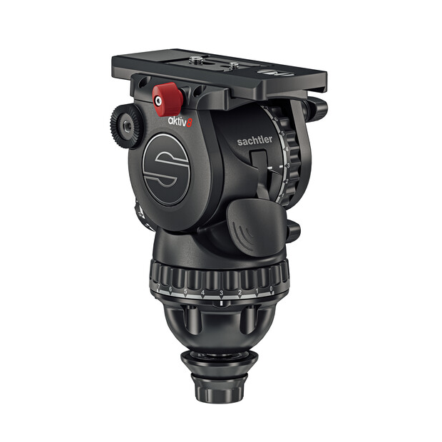 The aktiv8T Sideload Fluid Head uses Sachtler‘s truly innovative SpeedLevel technology to provide almost instant mounting and leveling of your camera rig on Sachtler 75mm tripod legs. The clamp and stud SpeedLevel system saves precious time leveling your camera rig by eliminating the need to screw on a tie-down knob. Designed for larger DSLRs, mirrorless, and digital cine-style cameras, the aktiv8T supports rigs weighing up to 26.5 pounds. This fluid head features 15 steps of counterbalance and seven steps of pan and tilt drag adjustment, plus zero settings for both balance and drag.